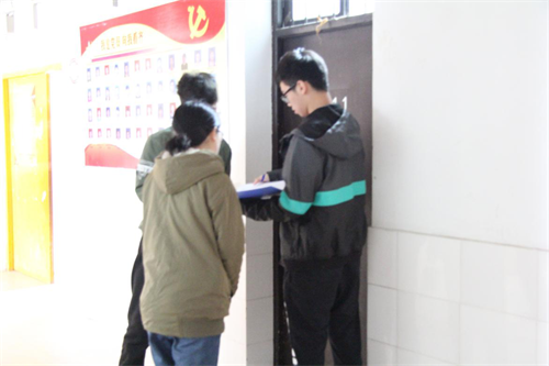 3月28日下午1时40分,协查人员本着严谨、公正的态度,对各寝室卫生情况进行检查,并对使用违规电器的寝室进行登记。