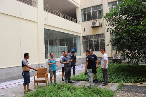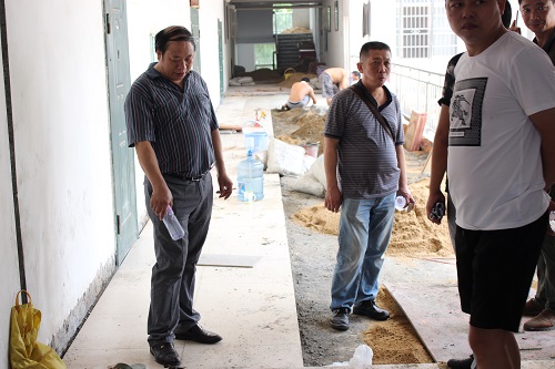 8月10日上午,此批维修工程迎来中期检查。后勤处王安新处长带领相关项目负责人先后对东、南院各学生宿舍及教学楼栋的维修工程进行现场督查,并仔细查验工程质量。后勤负责人强调,施工安全是第一位,质量保证是重中之重,施工单位一定要规范施工,科学管理,确保按期保质保量地完成维修任务。