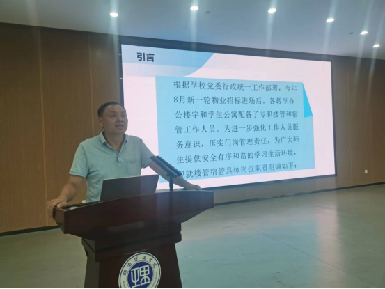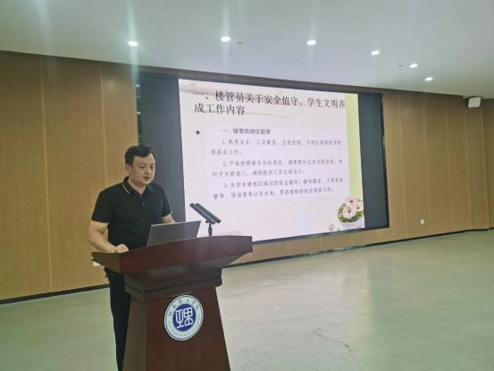 会上,党委学工部、党委保卫工作部、yL23411永利集团官网登录相关负责人就楼管宿管工作人员职责、日常管理常见问题应对、消防安全及突发事件处置等进行了详细解读。